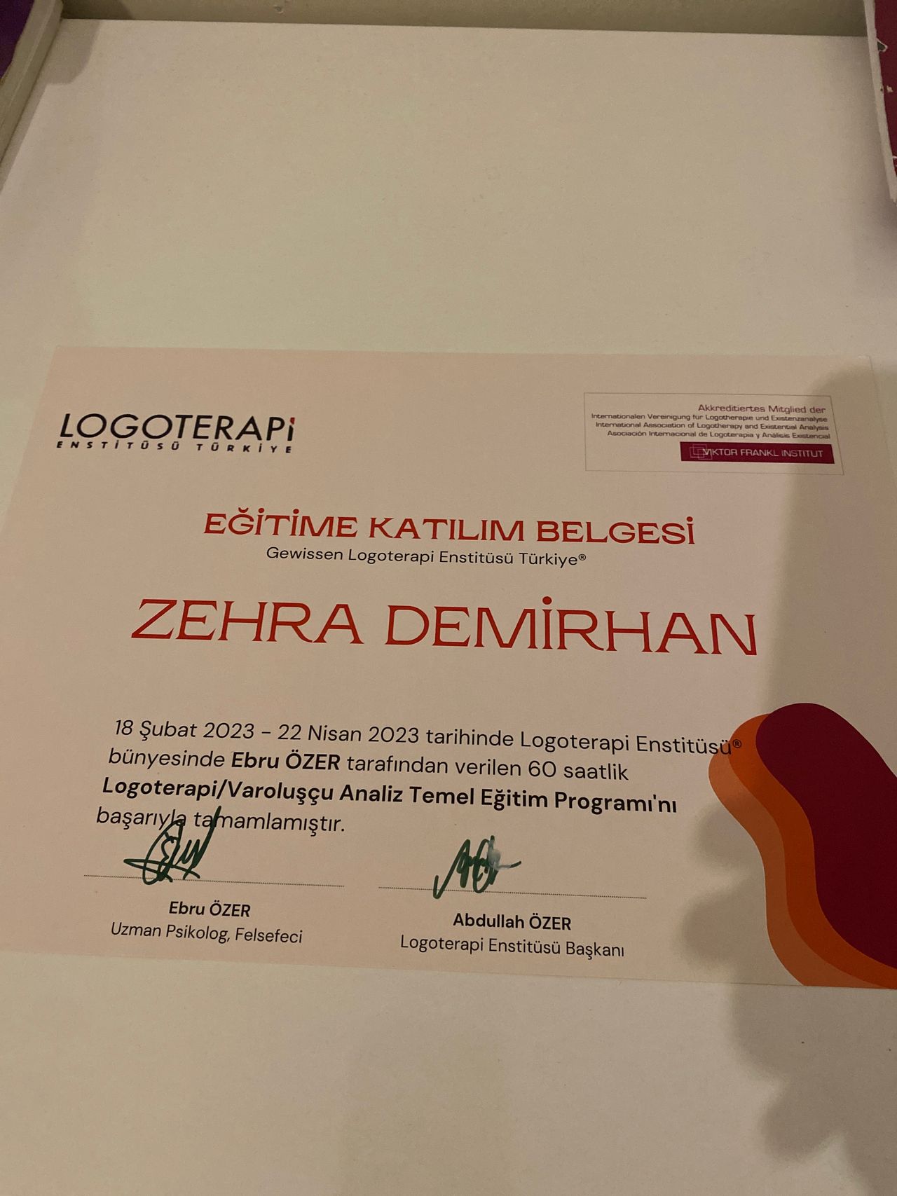 Zehra hocama kaygı, endişe ve takıntılı durumum sebebiyle başvurmuştum. Yaklaşık 3 aylık terapi yolculugumda Zehra hocamın desteği ve yoluma tuttuğu ışık ile içimdeki çocuğu tanıma fırsatı buldum.Yalniz ,çaresiz, korkan ,endişeli, güvensiz, ve sevgisiz o çocuğun elinden tutup, onu bu zor durumlardan kurtaracak olan kişinin yine "ben " olduğumu, Zehra hocam bana öğretti ve yolculuğuna eşlik etti.Destekleri ve nazik tutumu ile güven verdi .