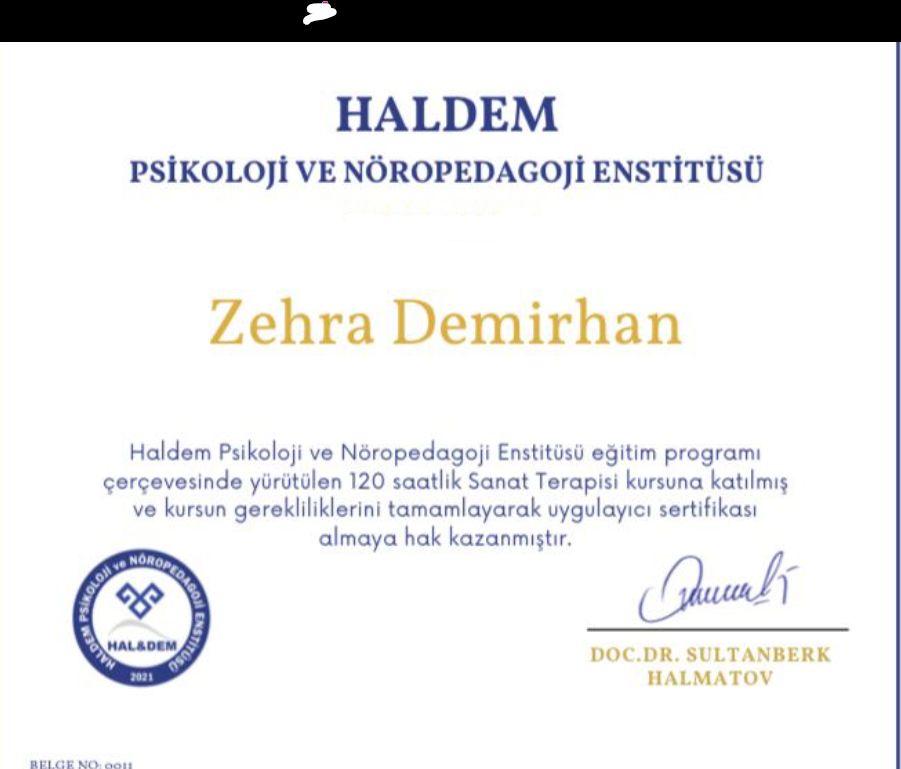 Zehra hocama 4 yaşındaki kızım için basvurdum öfke kontrolü vardı söz dinlememe vardı bunları cok güzel bir sekilde oyun terapisinde atlattık. Ben kendim icinde seans aldım aslinda çocuğumda ki ofke benden kaynaklaymis ve bunu çok güzel atlattim kendime deger vermeyi saygı duymayı öğrendim suan bir kuş gibi o kadar hafifimki..